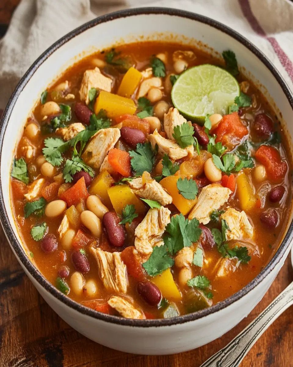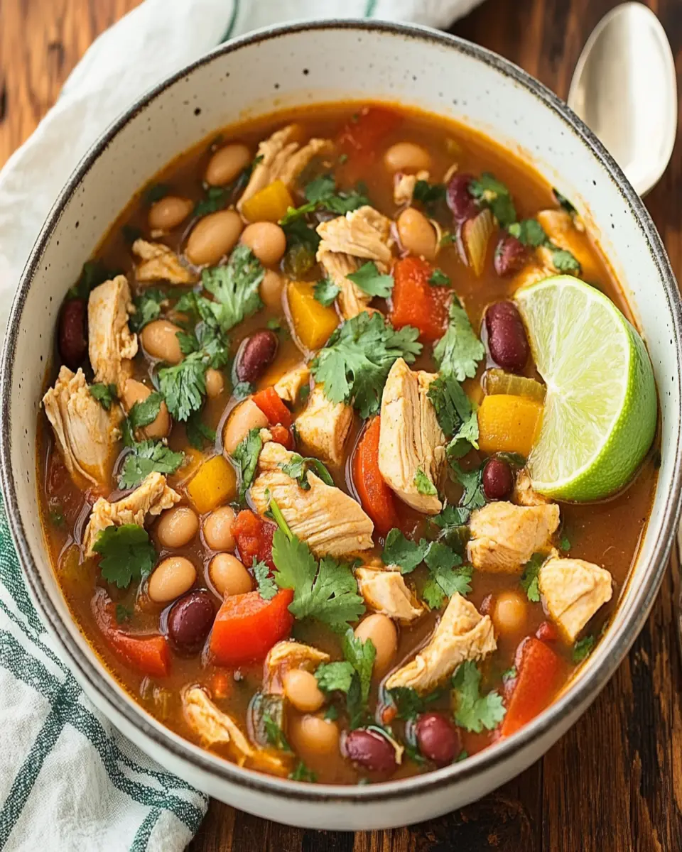 A hearty and flavorful chicken chili soup that is perfect for a cozy dinner.