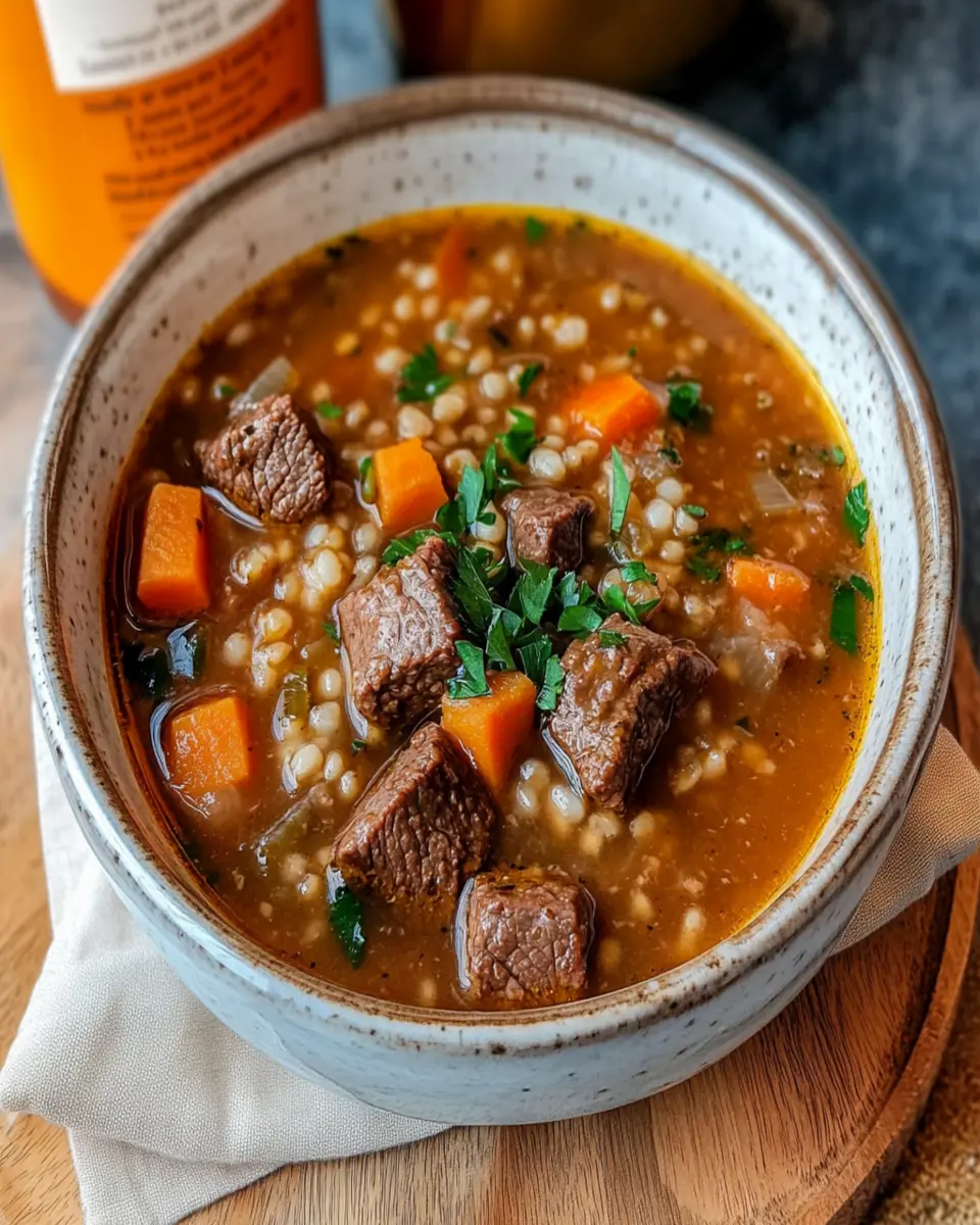 A warm and hearty soup perfect for chilly days, packed with beef, barley, and fresh herbs.