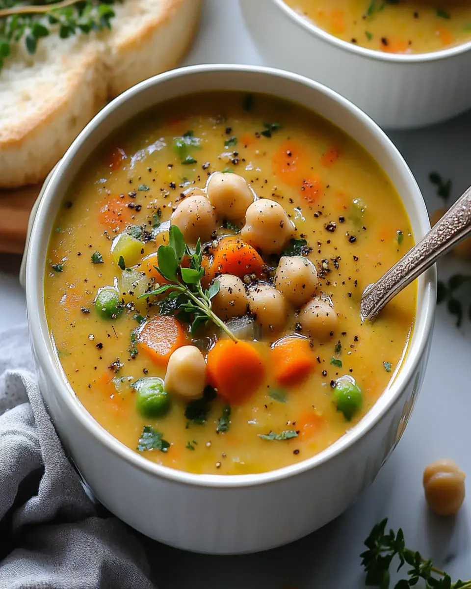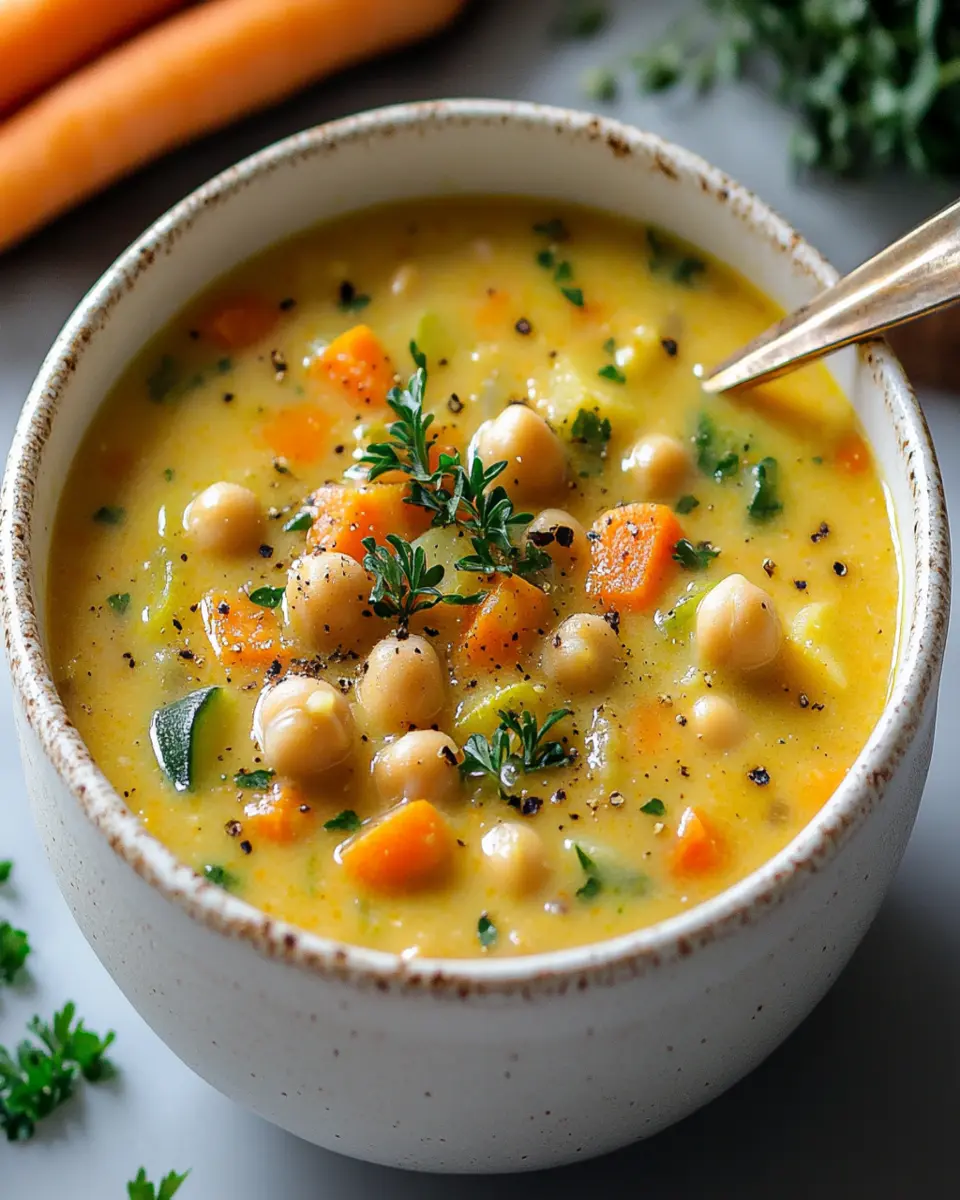 A hearty and creamy vegetable soup loaded with chickpeas for a nutritious twist.