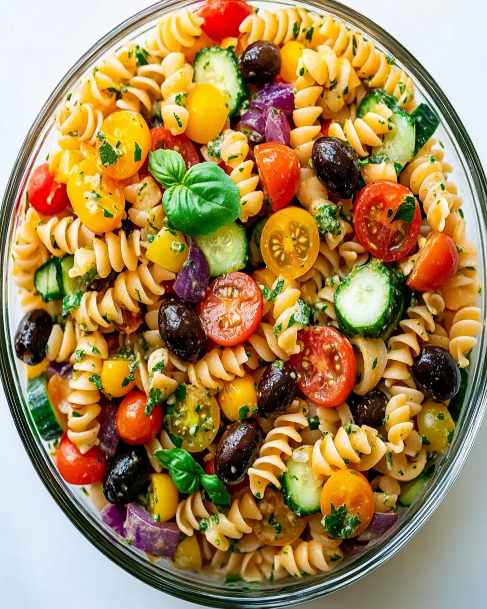 A delicious and refreshing Italian Pasta Salad perfect for parties, picnics, or as a side dish. Loaded with fresh vegetables, olives, and Italian dressing.