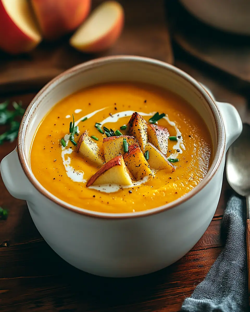In conclusion, Roasted Sweet Potato and Apple Soup is a delightful way to embrace the flavors of fall. This creamy and nourishing soup brings together the natural sweetness of sweet potatoes and apples, making it a comforting addition to any meal. With its simple preparation and wholesome ingredients, it’s perfect for busy young professionals and homemade-food lovers alike. Whether enjoyed on a chilly evening or served at a gathering, this soup is sure to be a hit. Don’t hesitate to cook, save, or share this recipe with friends and family for a heartwarming experience!