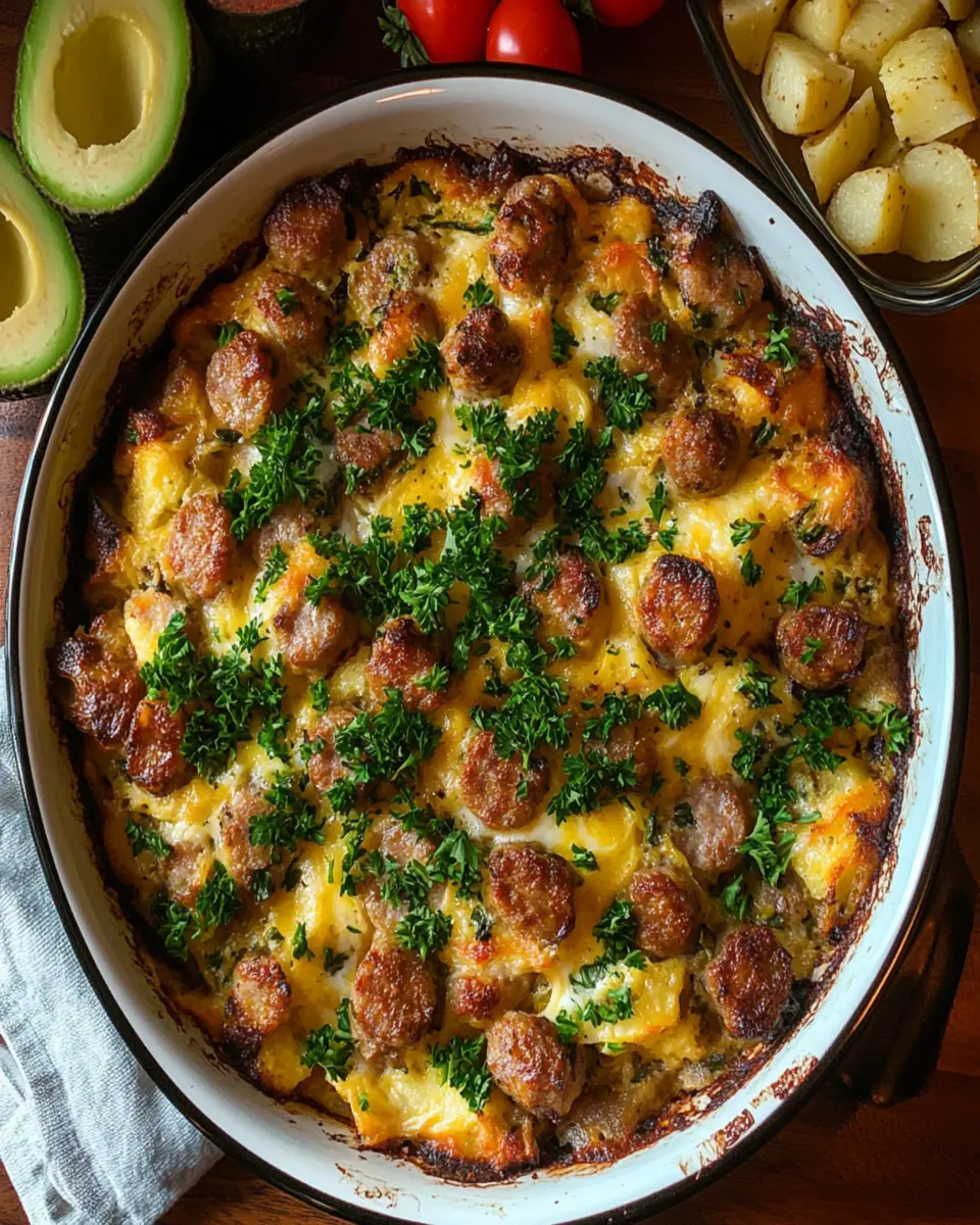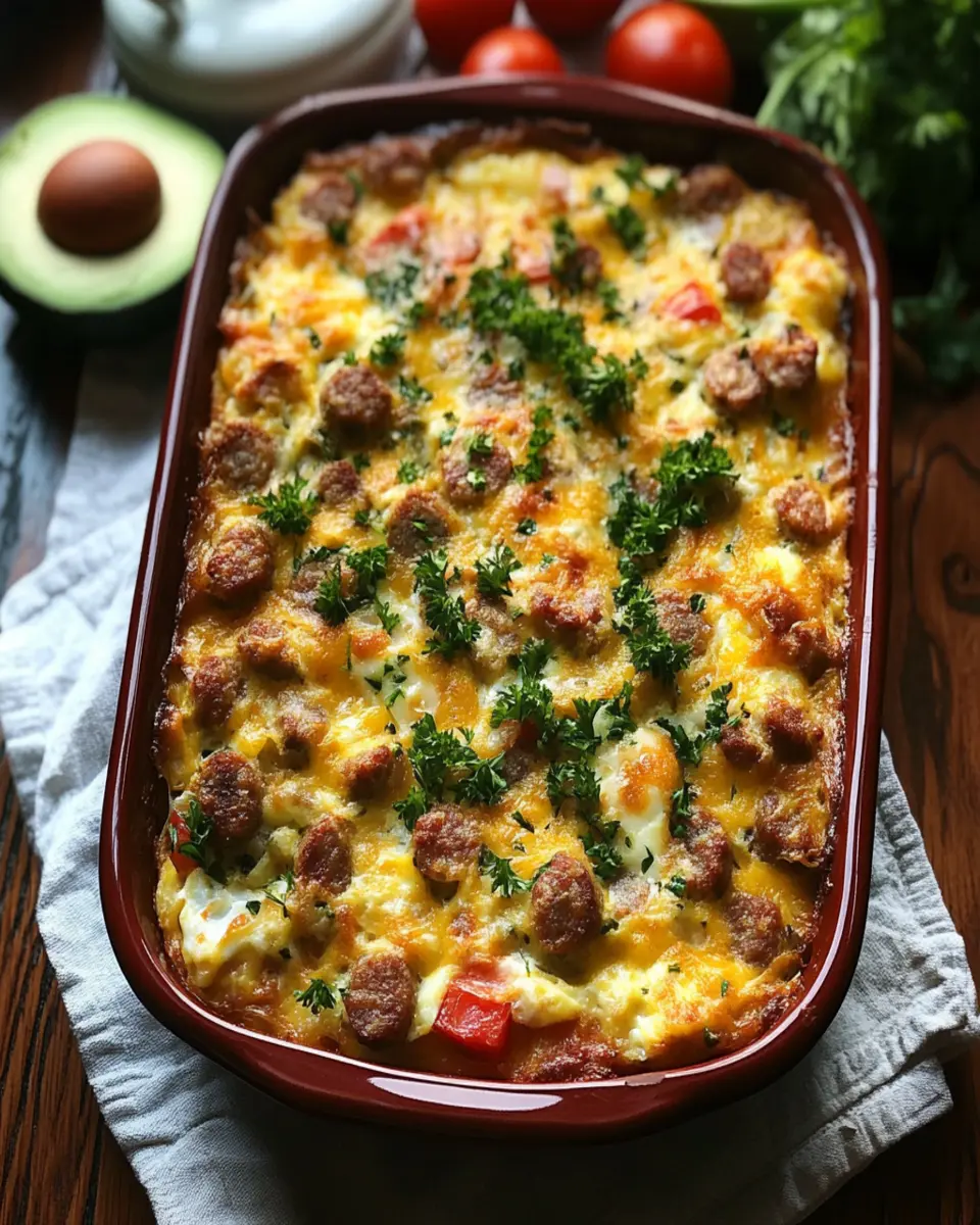 In conclusion, the Sausage and Egg Breakfast Casserole is the perfect solution for busy mornings and leisurely brunches alike. With its rich blend of sausage, eggs, and cheese, this dish offers a hearty and satisfying start to your day. Not only can it be prepared in advance, but it also allows for customization to suit your taste preferences. Whether enjoyed with family or friends, this casserole is sure to become a staple in your breakfast rotation. So why not give it a try? Cook, save, share, or comment on your experience with this delicious recipe!